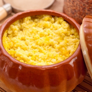 Рис и пшено следует тщательно промыть, а потом отправить к тыкве и кураге и сразу залить водой. Затем добавить соль и оставить вариться на маленьком огне еще минут 10-15. По прошествии этого времени посыпать сахаром.