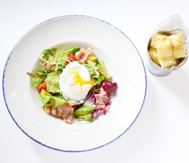 Салат с яйцом пашот, авокадо и жареным беконом