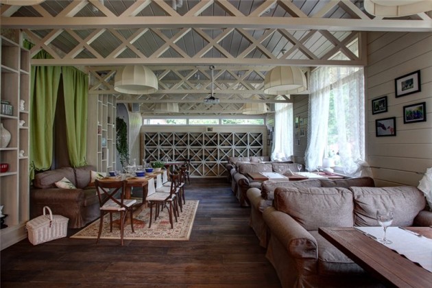 Конечно, дачная тематика отразилась и в интерьере заведения: выдержанный в нейтральных и пастельных тонах, с плетеными креслами и побеленной мебелью, он взывает ассоциации с бабушкиной дачей и курортами Прованса.