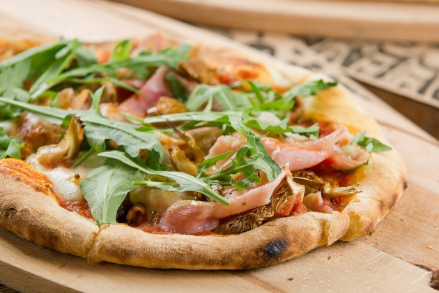 - Пицца с тамбовским окороком, вешенками и трюфельным маслом, 450 руб.