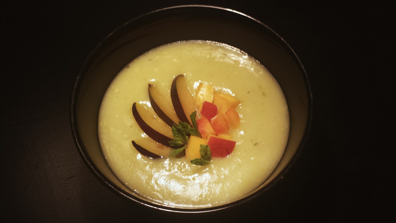 Холодный крем-суп из цукини со свежими фруктами и мятой